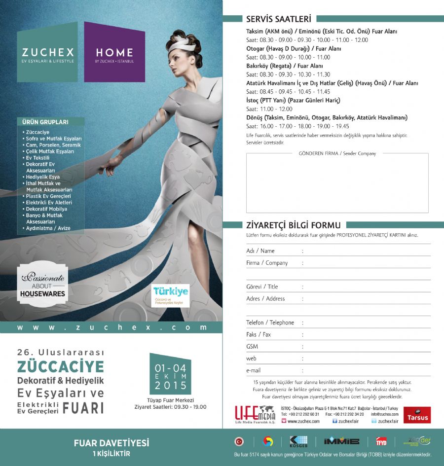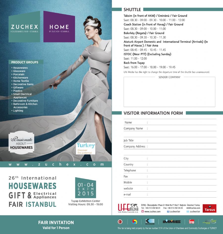 26. Uluslararası Zuchex Fuarında (01-04 Ekim 2015 Tüyap/Beylikdüzü) 12. Salondayız.