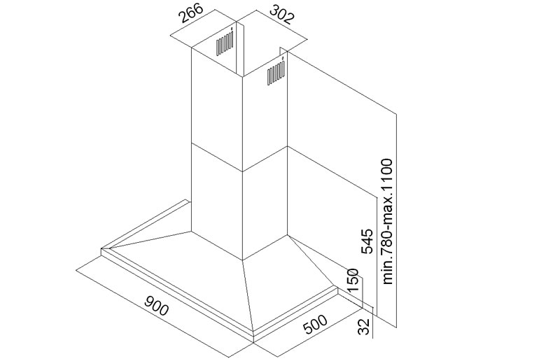 Üç hız kademeli motor. Yıkanabilir alüminyum filtre. 2 yuvarlak karbon filtre ile bacalı-bacasız kullanım. N-RV sistem. Timer. Trafolu çift spot lamba. Seçenekler: Dokunmatik elektronik kontrol, push buton, sürgülü düğme